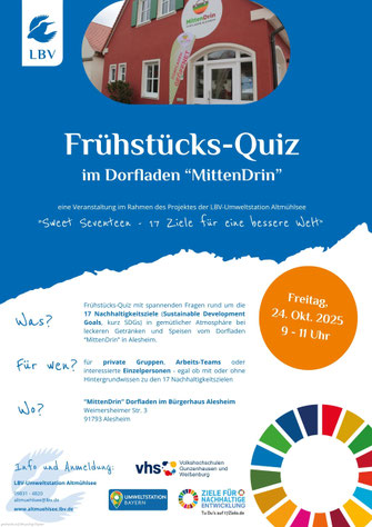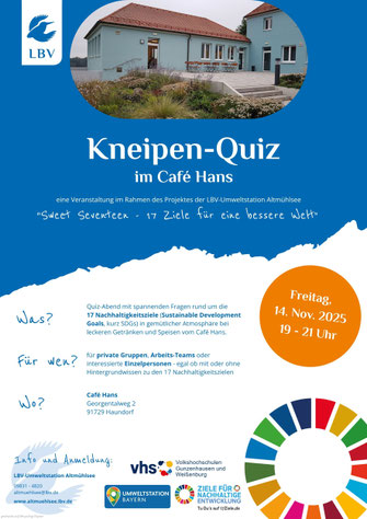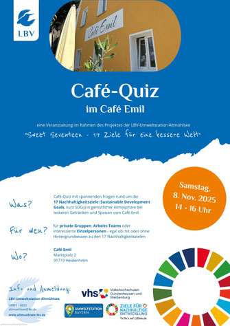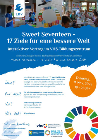 Im Rahmen unseres Projektes "Sweet Seventeen - 17 Ziele für eine bessere Welt" veranstalten wir in den nächsten Wochen in Kooperation mit der VHS Gunzenhausen einige spannende und kurzweilige Quiz-Termine und einen interaktiven Vortrag. In