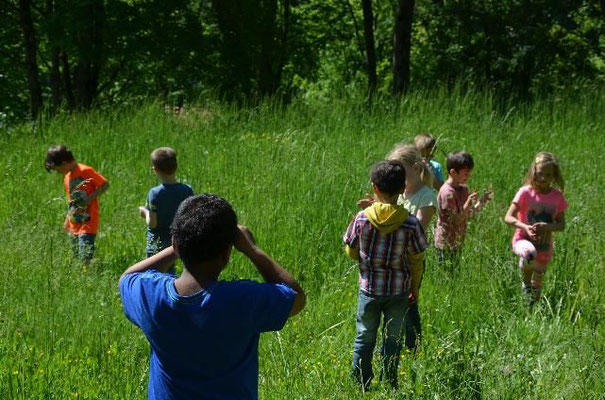Unterrichtseinheiten und Wiesenexkursionen erforschten die Schüler und Schülerinnen spielerisch die unterschiedlichen pflanzlichen und tierischen Bewohner der Wiese und lernten so wichtige